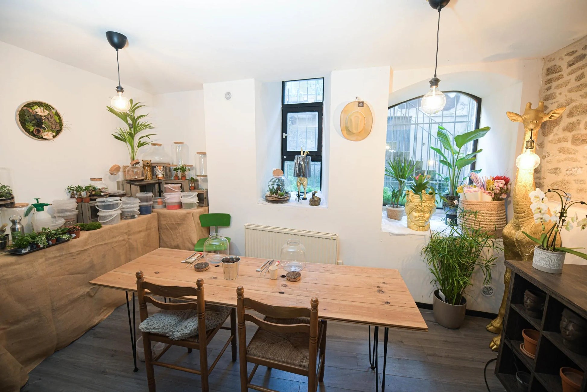 Les ateliers se déroulent au cœur de notre boutique accompagnée d’une ambiance végétale. Cette bulle de bien-être, propice à la création, vous aidera à vous apaiser et à vous évader de l’environnement citadin.