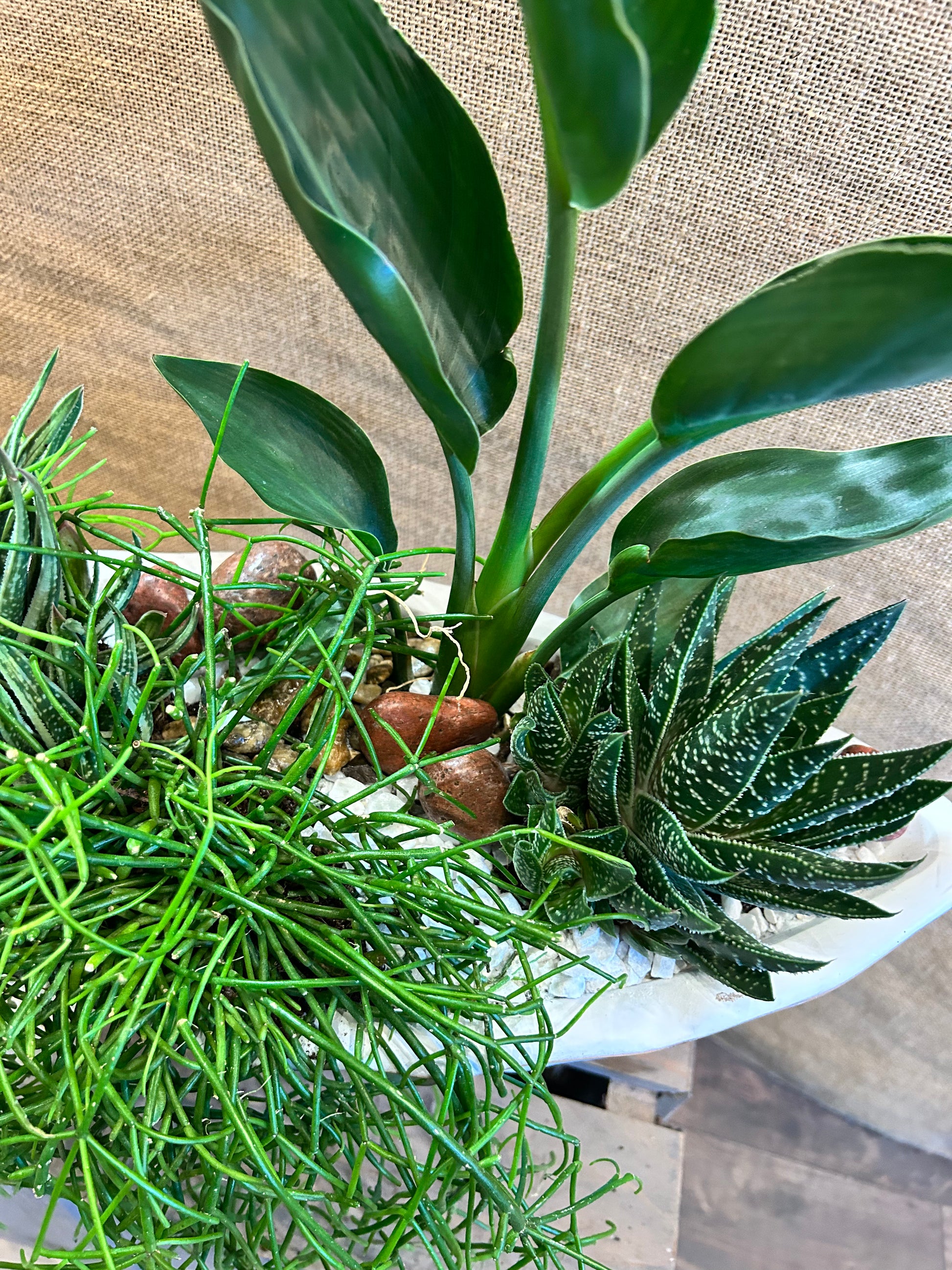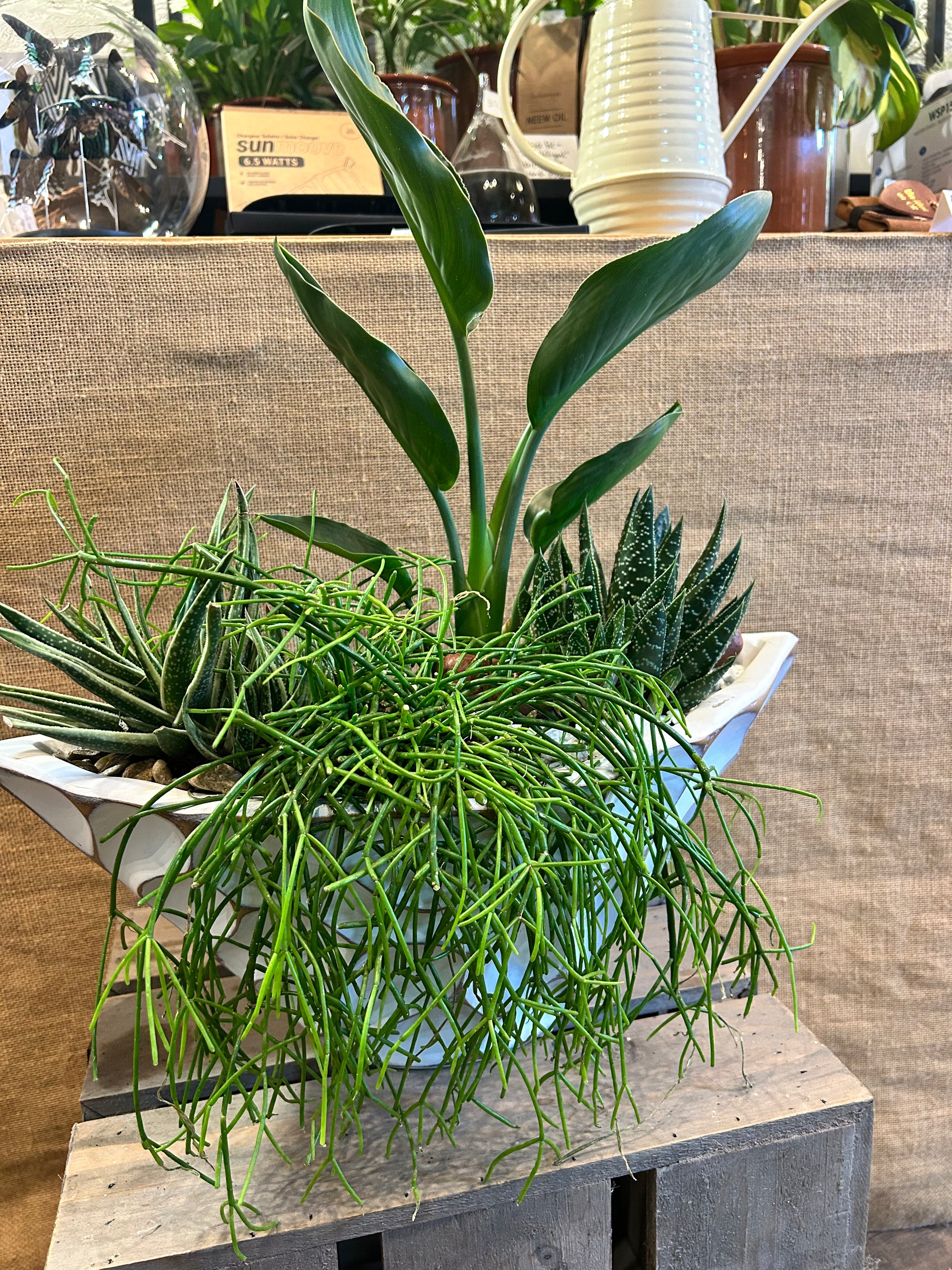 Laissez entrer la nature dans votre intérieur avec cette élégante composition de plantes, mêlant formes graphiques et nuances de vert. Disposées avec soin dans un joli contenant, elles apportent une touche moderne et apaisante à votre décoration. Faciles à vivre et toujours décoratives, elles se marient à tous les styles d’ambiance.